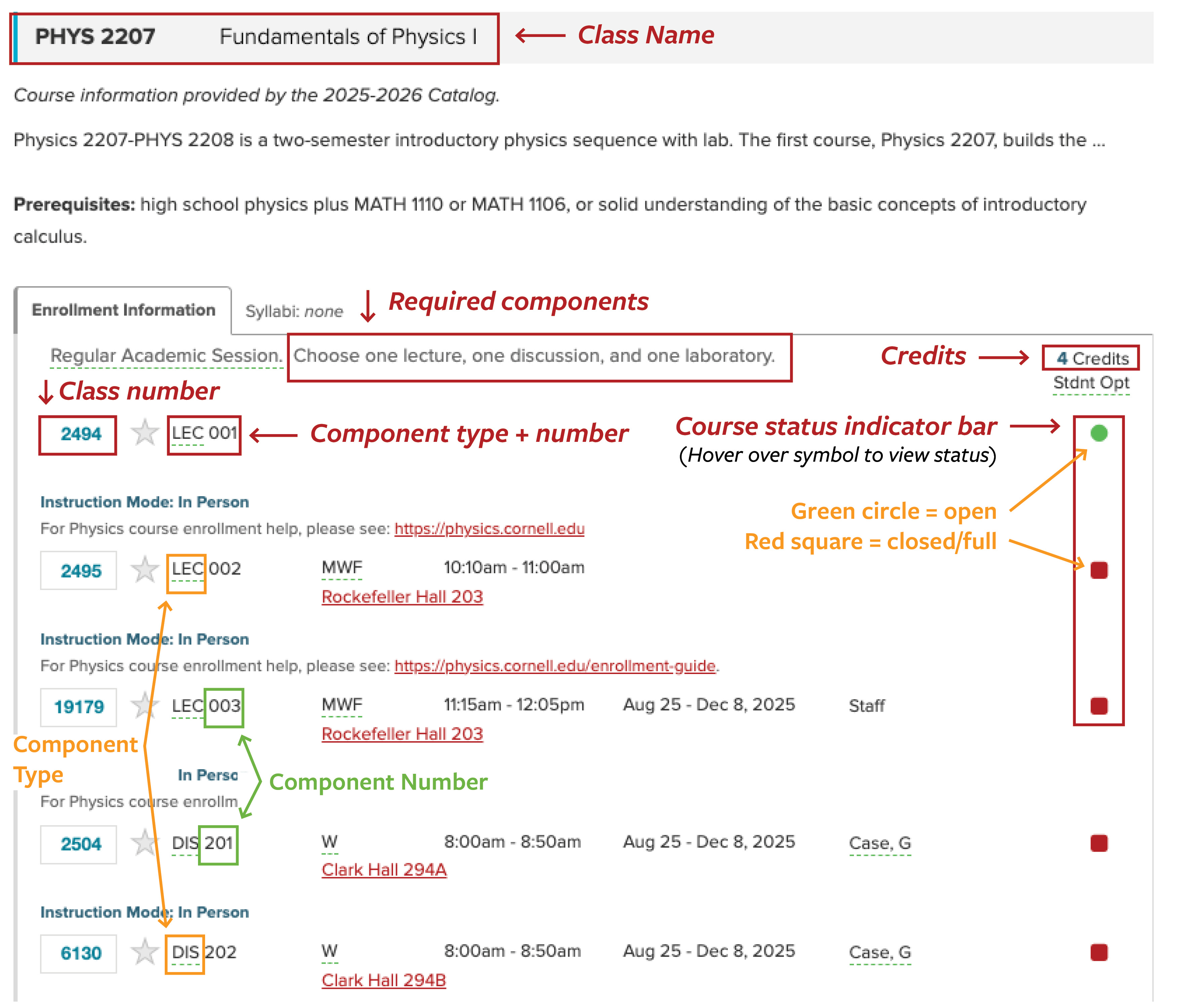 Below is an annotated roster example of where to find the required course information.